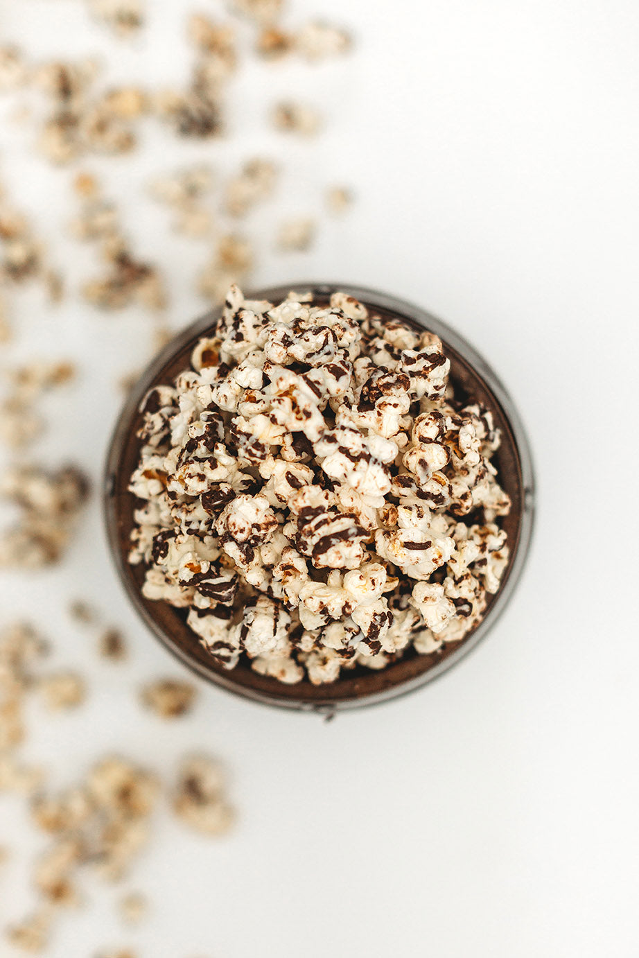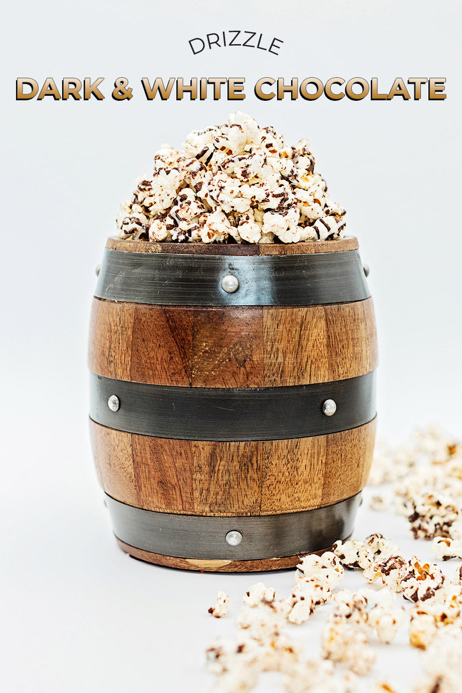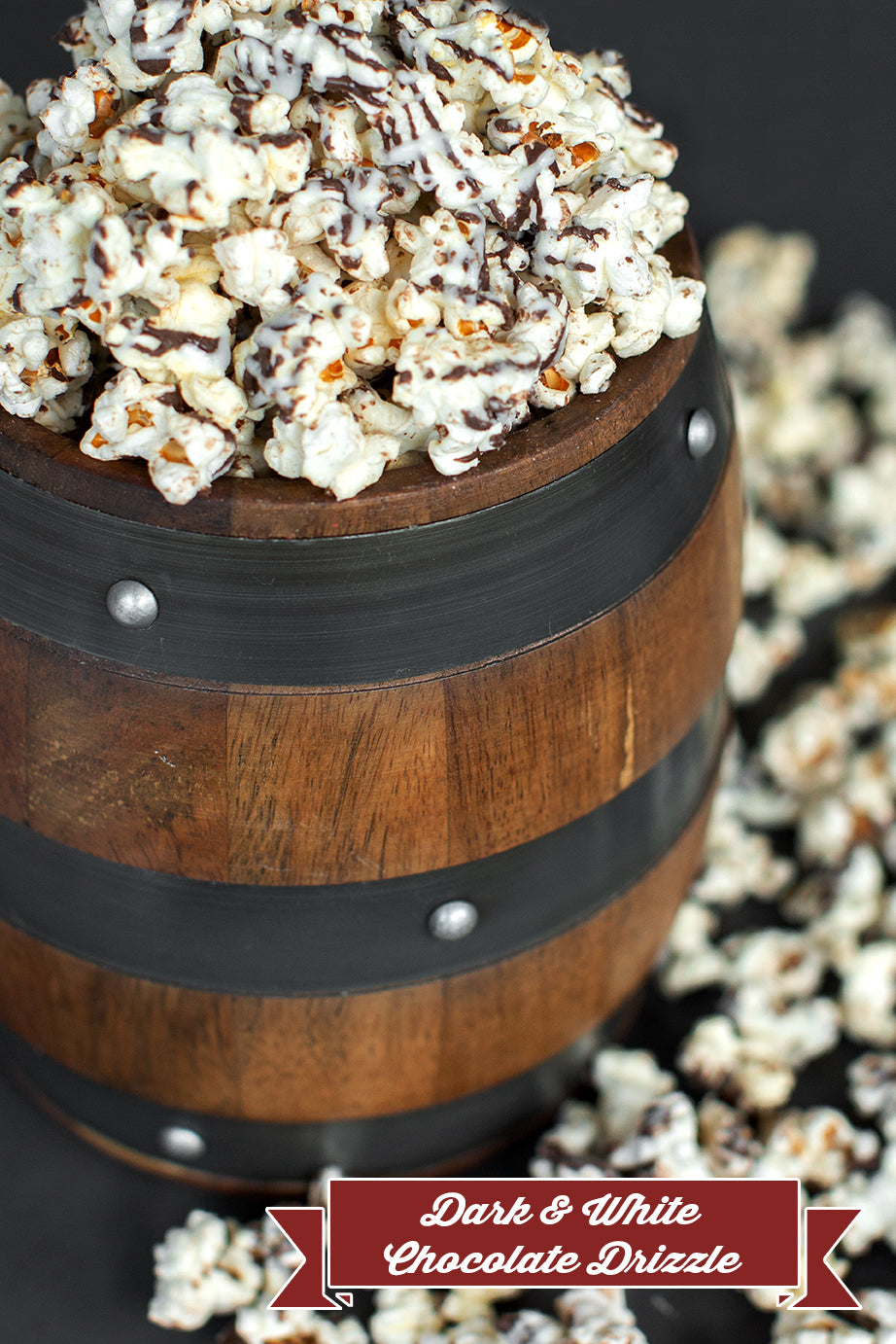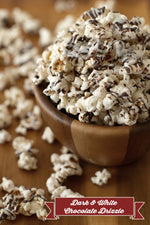 We take our Simply Salted popcorn and drizzle a decadent dark chocolate along with a creamy white chocolate all over the top for a double dose of chocolatey flavor!