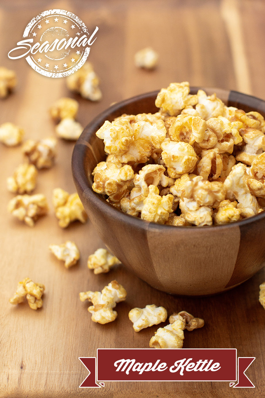 Get this Limited Edition gourmet popcorn while it lasts! Our Maple Kettle brings back sweet memories of eating pancakes and syrup with the family on cool, fall mornings! It is lightly coated with just enough sweetness that your sweet tooth is perfectly satisfied.