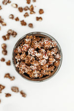 This is not a chocolate drizzle, people. Each individual piece of popcorn is coated in our delicious chocolate. Pair that with the amazing caramel it started out as, and you have a match made in heaven. This is a perfect addition for the holiday season!