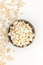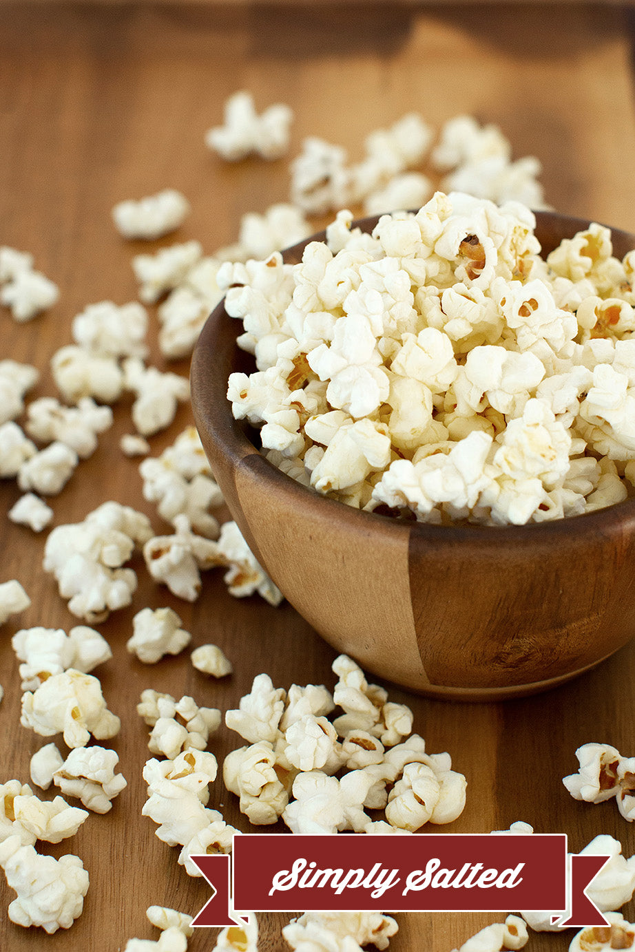 Popped in coconut oil and lightly salted. Basic, but oh, so good!