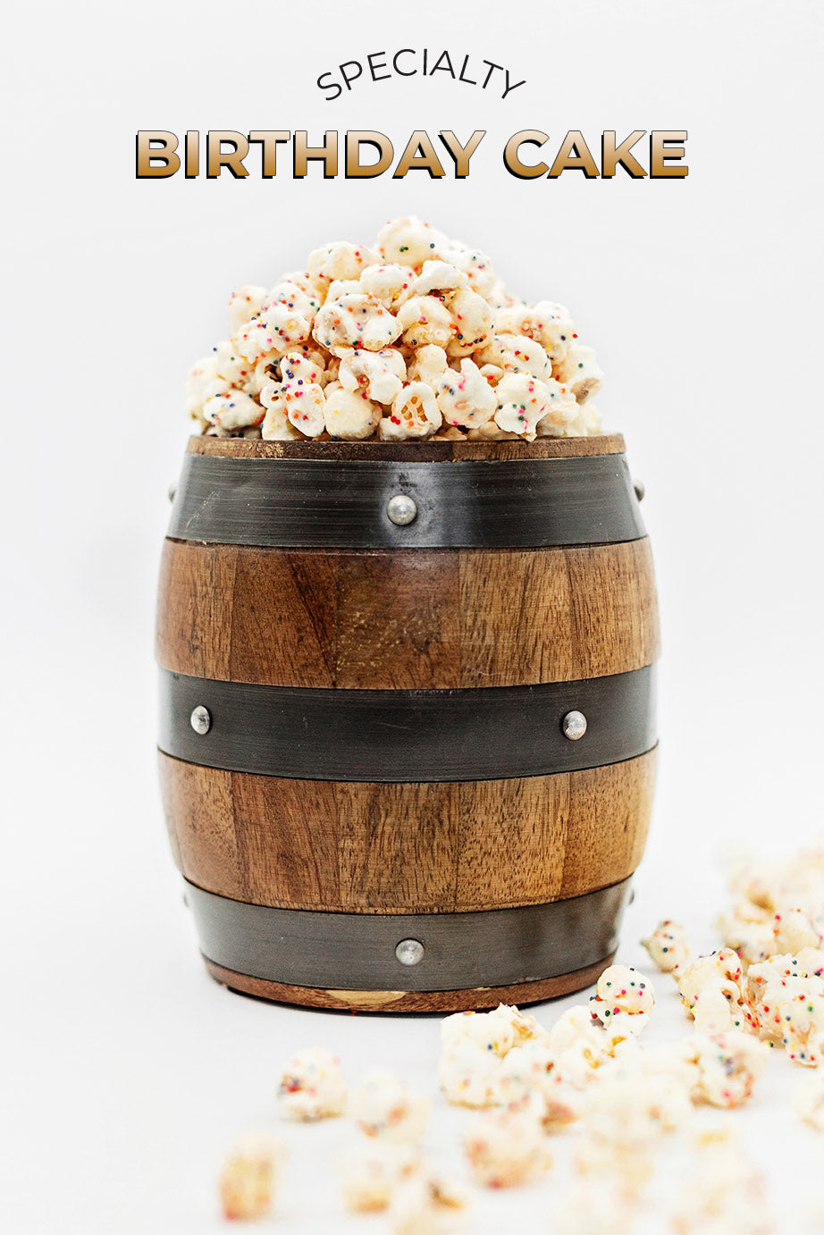 All you need are the candles! Deliciously coated cake flavored popcorn coated in white chocolate, with a generous amount of rainbow sprinkles, makes it feel likes it's your birthday every day! Now there's a reason to celebrate!